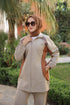 Elegant, functional, and incredibly comfortable — this modest zippered set redefines sporty chic. The top piece features a full-length zipper, two side pockets, and drawstring details at the waist. Subtle contrast seams bring modern character, while the soft, flexible fabric keeps you at ease during movement. The loose-fit trousers complete the look with a comfortable waistband and matching side lines, making it a versatile outfit for every day of the week.