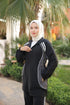 Elegant, functional, and incredibly comfortable — this modest zippered set redefines sporty chic. The top piece features a full-length zipper, two side pockets, and drawstring details at the waist. Subtle contrast seams bring modern character, while the soft, flexible fabric keeps you at ease during movement. The loose-fit trousers complete the look with a comfortable waistband and matching side lines, making it a versatile outfit for every day of the week.