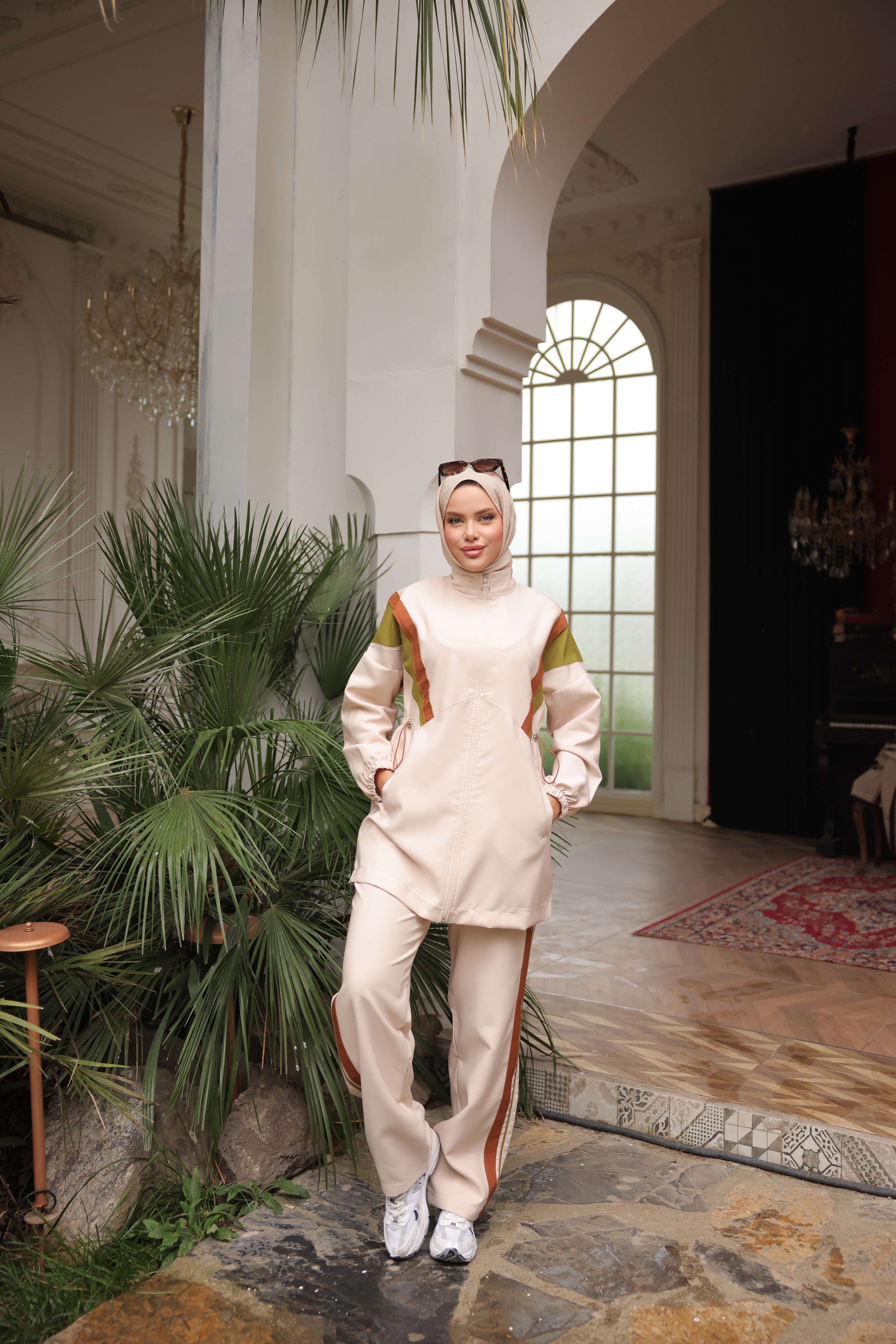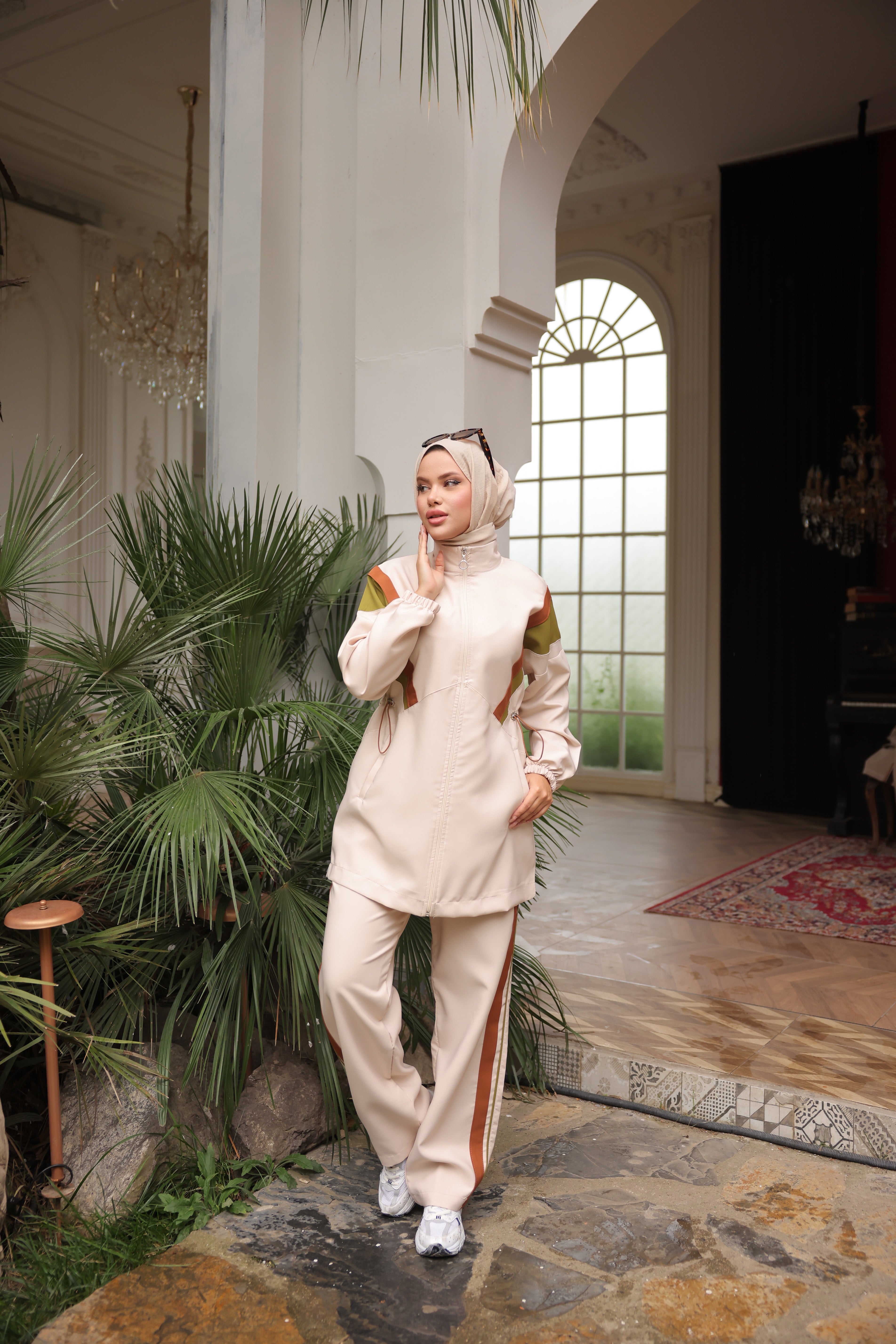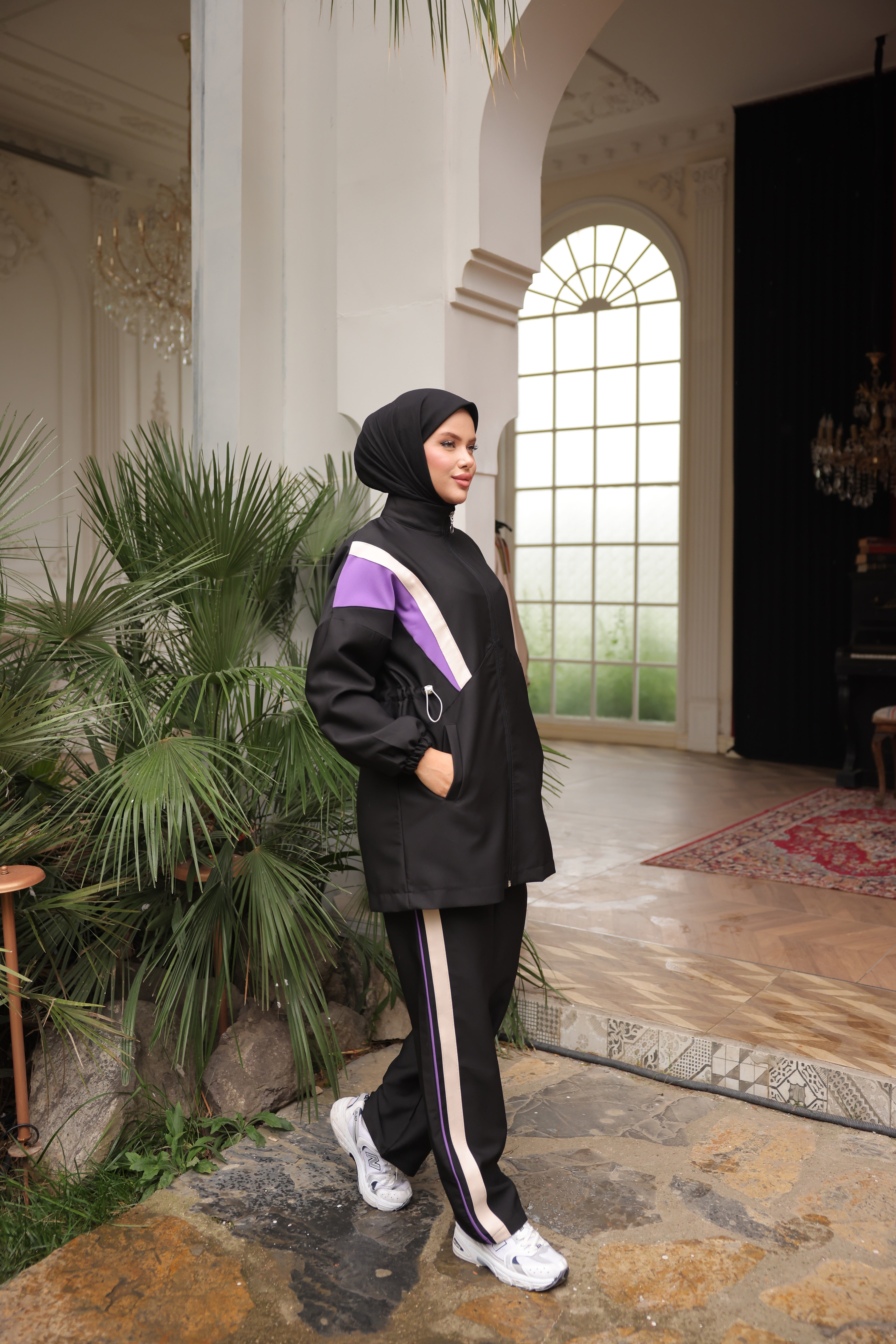 Upgrade your daily wear with this premium modest tracksuit designed to keep up with your lifestyle. The breathable fabric ensures comfort, while the adjustable drawcord waist provides a personalized fit. Its thoughtful details — from elastic sleeve cuffs to the refined zip finish — reflect quality craftsmanship. Perfect for casual strolls, travel, or lounging, this set combines modern modest fashion with timeless comfort.